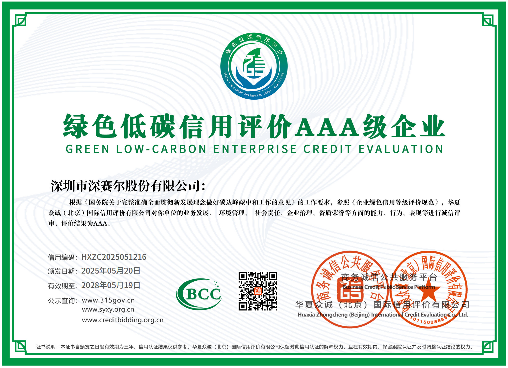 綠色低碳信用評(píng)價(jià)3A級(jí)企業(yè)